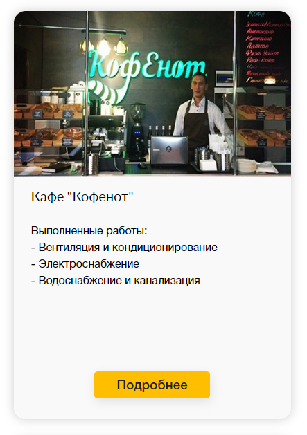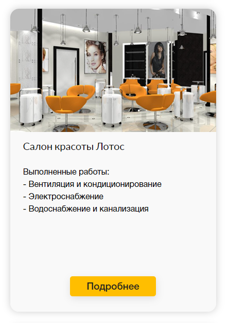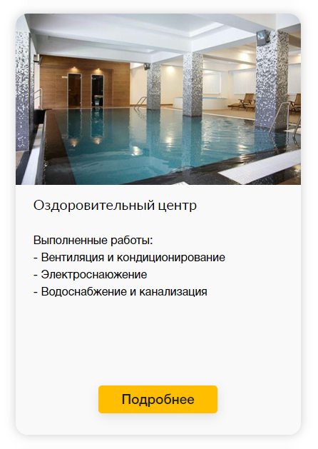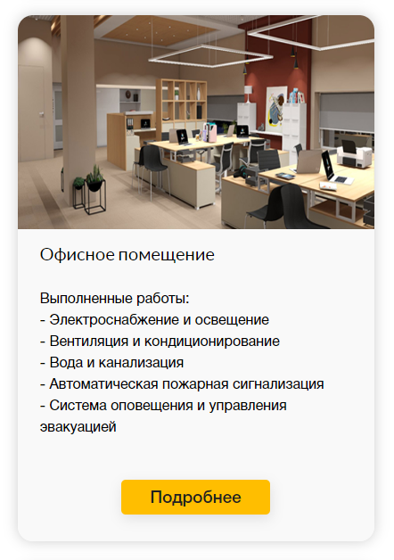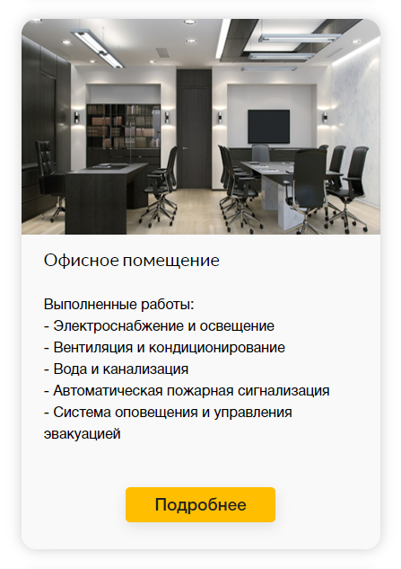 Выполненные работы: - Вентиляция и кондиционирование - Электроснабжение - Водоснабжение, отопление и канализация - СКУД