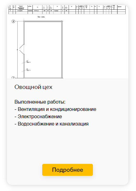 Выполненные работы: - Электроснабжение и освещение - Вентиляция и кондиционирование - Аспирация и пылеудаление - Вода и канализация - Автоматическая пожарная сигнализация - Система оповещения и управления эвакуацией