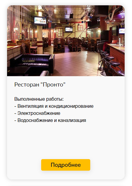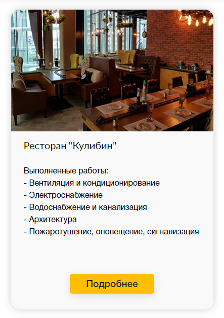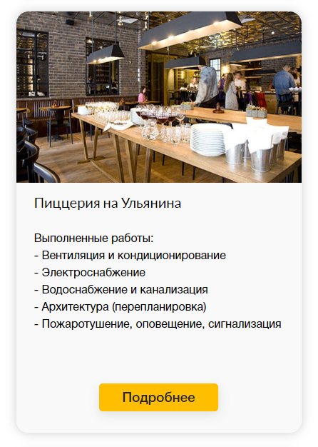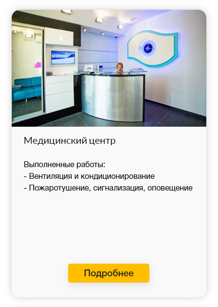 Более 360 реализованных объектов «под ключ». Наши вертикали — индивидуальные жилые дома, мед. центры, развлекательные центры, места общепита, производственно-промышленные предприятия.