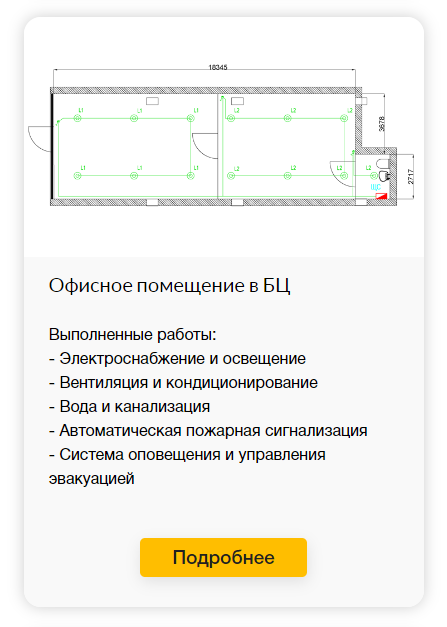 Выполненные работы: - Вентиляция и кондиционирование - Электроснабжение - Водоснабжение и канализация - Автоматическая пожарная сигнализация - Система оповещения и эвакуации - Автоматическая установка пожаротушения